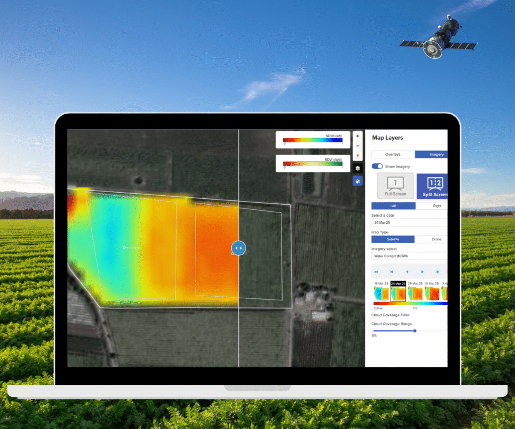 In FarmMap, users receive anomaly alerts based on Farm(x) AI analysis of canopy vigor imagery